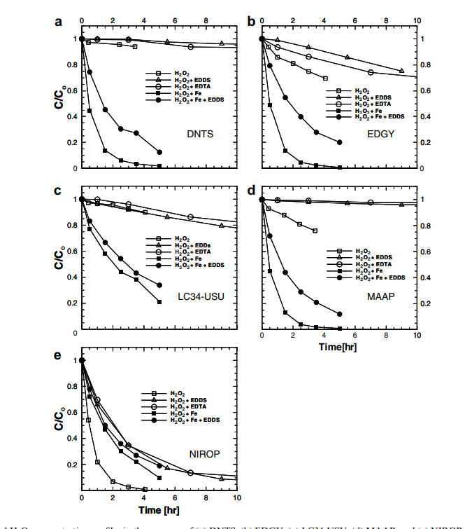 EDDS組:加入EDDS后,H?O?分解速度直接慢10倍(比如從1.2小時(shí)?¹降到0.2小時(shí)?¹),效果比傳統(tǒng)EDTA強(qiáng)近一倍!