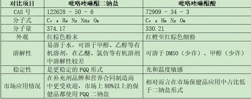 臺(tái)州凌峰生物生物發(fā)酵工藝生產(chǎn)的PQQ二鈉鹽,產(chǎn)品純度高達(dá)99%,已被國(guó)內(nèi)外多家保健品品牌商應(yīng)用于膠囊、固體飲料等劑型中。近期市場(chǎng)對(duì)PQQ酸的關(guān)注度有所上升,盡管目前PQQ二鈉鹽(包括化學(xué)合成與發(fā)酵工藝產(chǎn)品)已通過(guò)國(guó)內(nèi)法規(guī)審批并占據(jù)主流應(yīng)用,但仍有必要系統(tǒng)梳理兩者的核心差異。以下是詳細(xì)對(duì)比: