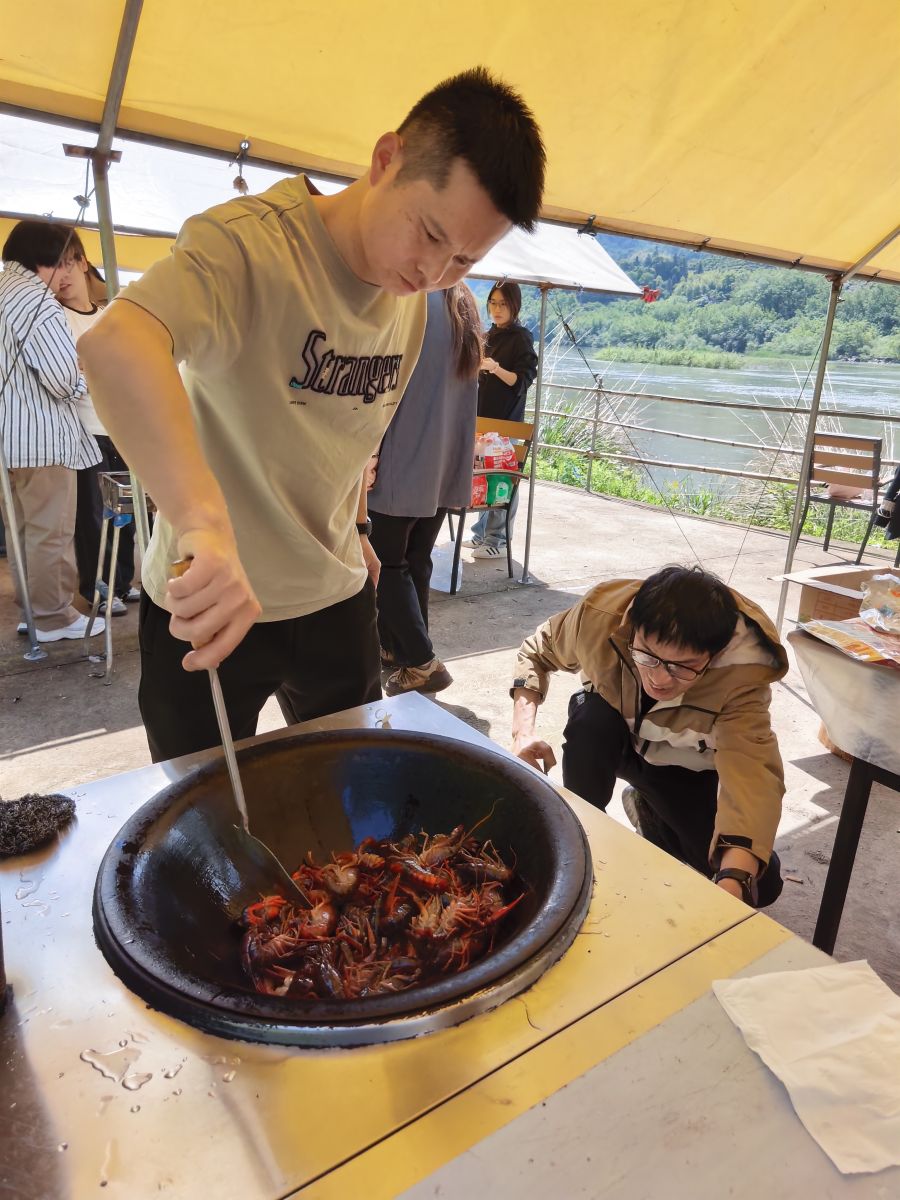 沒(méi)有預(yù)設(shè)的任務(wù)分配,卻意外見(jiàn)證了團(tuán)隊(duì)的“自驅(qū)力”——有人搶著生火,有人主動(dòng)洗菜,手速慢的同事只能笑著舉手:“那我負(fù)責(zé)吃?”平日里嚴(yán)謹(jǐn)?shù)膶?shí)驗(yàn)室伙伴,此刻在灶臺(tái)前竟也卷了起來(lái)!這自驅(qū)力,不僅僅在工作中發(fā)揮的淋漓盡致,在生活中咋還繼續(xù)!工作是為了更好的生活,更好的生活能夠?yàn)楣ぷ髯⑷敫嗟脑磩?dòng)力,這應(yīng)該是他們的真實(shí)寫(xiě)照吧。